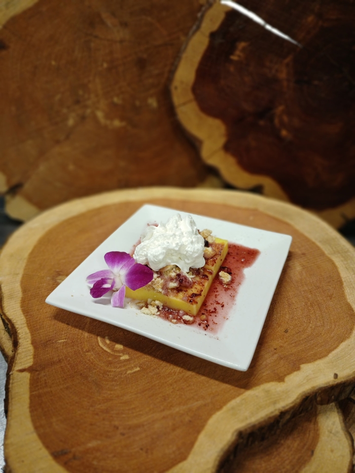 Rich heavy cream, eggs, and real vanilla, topped with a crunchy caramelized sugar crust.