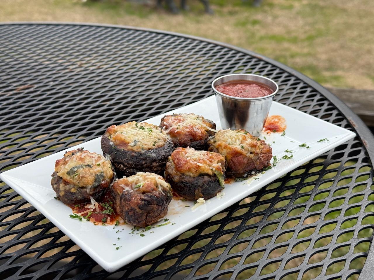 Mushrooms stuffed with pork sausage, cream cheese, parmesan cheese and spinach. Served with marinara sauce for dipping.
