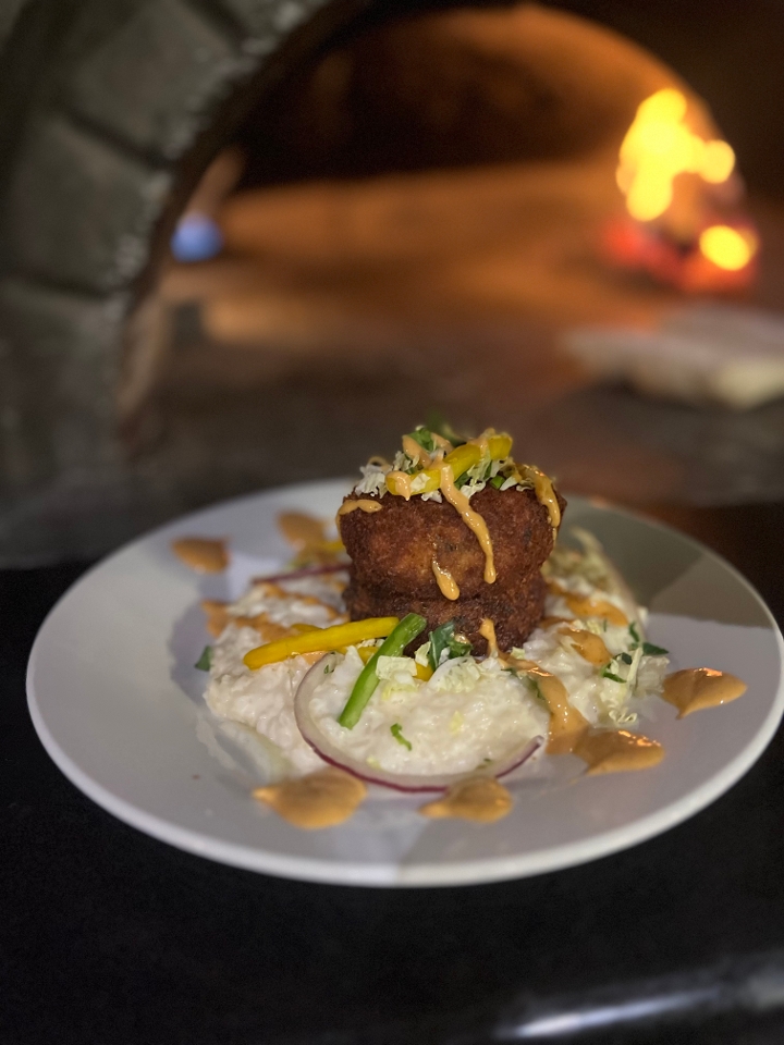 Two lump crab meat cakes mixed with bell peppers and freshly chopped parsley served on our signature lemon cream risotto and garnished with warm slaw.