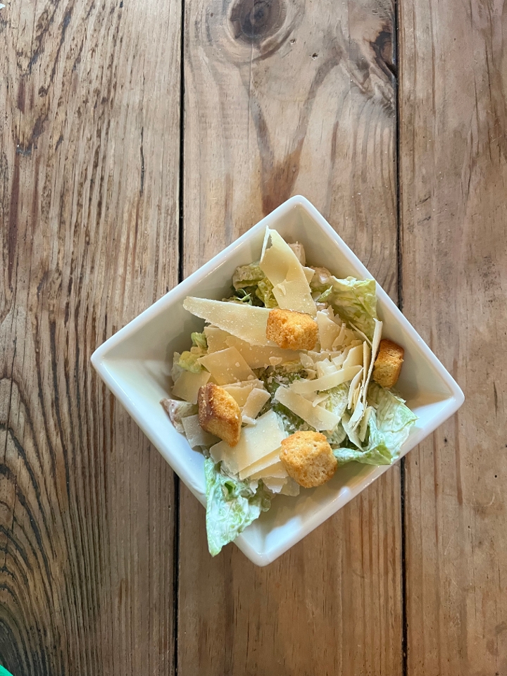 Smaller portion of our delicious salad topped with our house Caesar dressing, fresh parmesan and seasoned croutons.