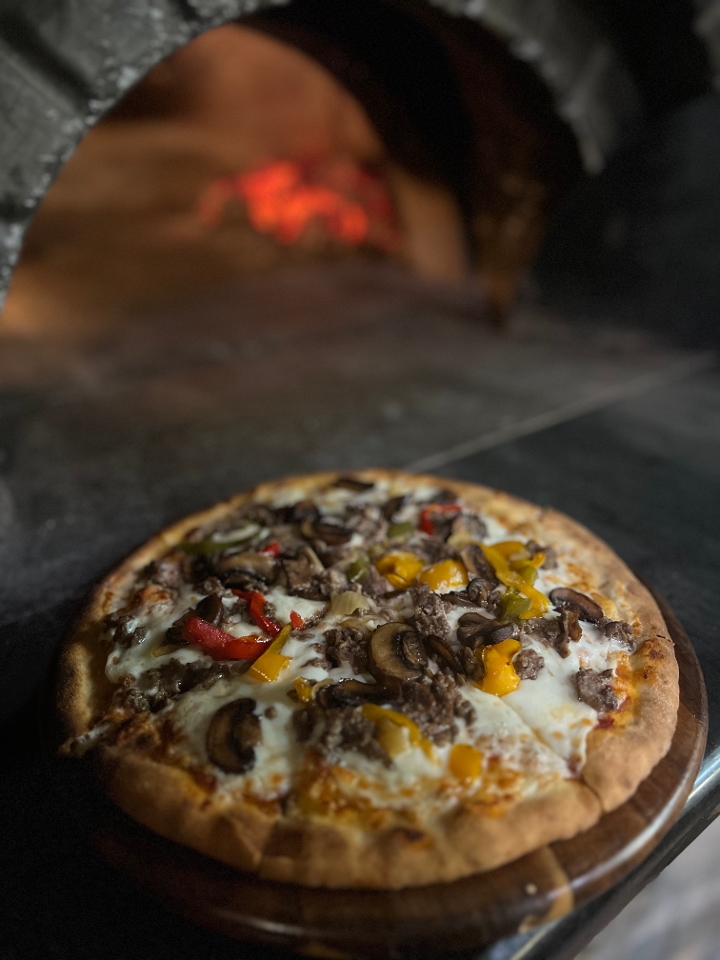 Shaved rib-eye steak, bell peppers, onions, sliced mushrooms with mozzarella cheese and garlic Angelina sauce.