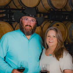 Jeff and Heather have spent most of their adult lives in the Dallas/Fort Worth area raising two children, multiple cats, dogs and birds while trying to balance work and home life. They relocated to East Texas in 2017 full time to work their land and enjoy a slower pace of life. Of course, purchasing land right next to a winery was a HUGE plus. Jeff spent most of his time climbing the corporate ladder and traveling extensively both internationally and within the United States with companies like Hitachi, Pioneer, KeyLink Systems Group and finally Lumenate, a $750 million dollar consulting firm where he retired as the CIO and SVP of Compliance in 2017. Prior to their time together Jeff was a Deputy Sheriff in Southeastern Oklahoma for 8-ish years which is also where he obtained his pilot licenses while attending Southeastern Oklahoma State University and their Aviation Business Management program. Heather has been a successful entrepreneur and running her own custom embroidery and clothing company since 2013 called PrincessMonkey Designs. Prior to opening her own business, she also worked in technology, which is where she met Jeff and was an expert with the systems that allowed the company she worked for to integrate and support IBM system sales through the Distribution channel. Along with the responsibility of building a business from scratch in 2013 she was very active locally in the city where they lived running various city-wide organizations that provided activities for the children of Garland. In addition to this she was also very active in the school lives of the children and ran the PTA organizations for their elementary and middle school years. While doing all of these activities they had the opportunity to travel and taste wonderful food and wines. This created in them both what you would call “Foodies” and a desire to indulge in fine food and great wine which led them to Los Pinos one afternoon in 2016 as a customer and back again in the summer of 2021 as owners.