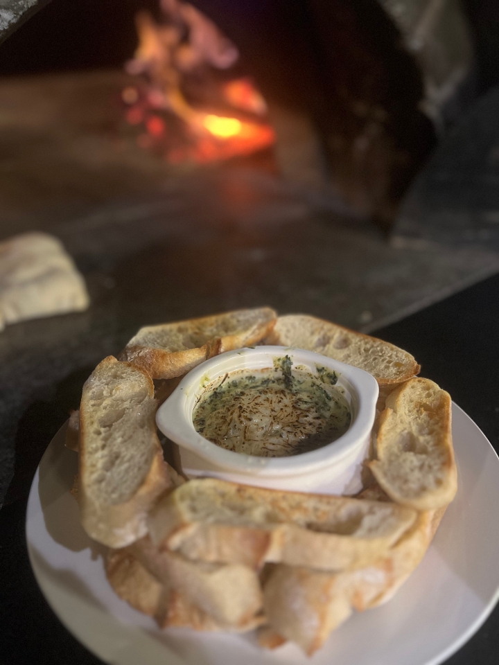 Creamy blend of spinach, artichokes and cheeses, baked until golden and served with warm baguette slices.