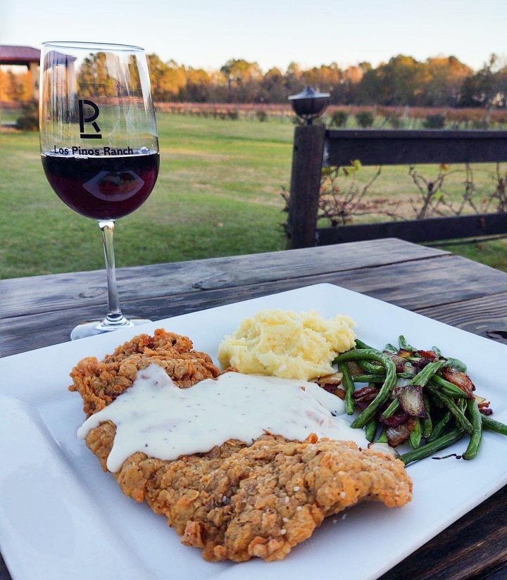 Served fresh garlic mashed potatoes, sautéed green beans and house made cream gravy on the side. This classic southern dish pairs well with our Chianti style Sangiovese, or sweet and spicy Sweet Rodeo Red.