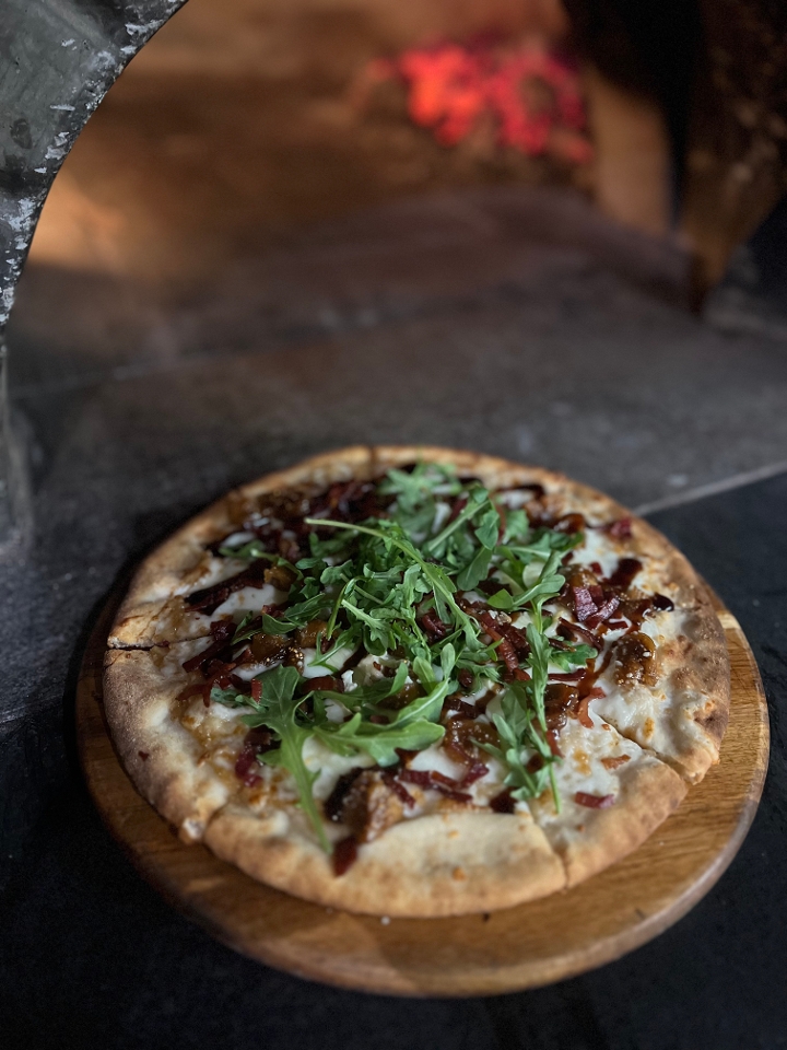 Mission Figs, prosciutto and a balsamic reduction with herbed goat cheese.